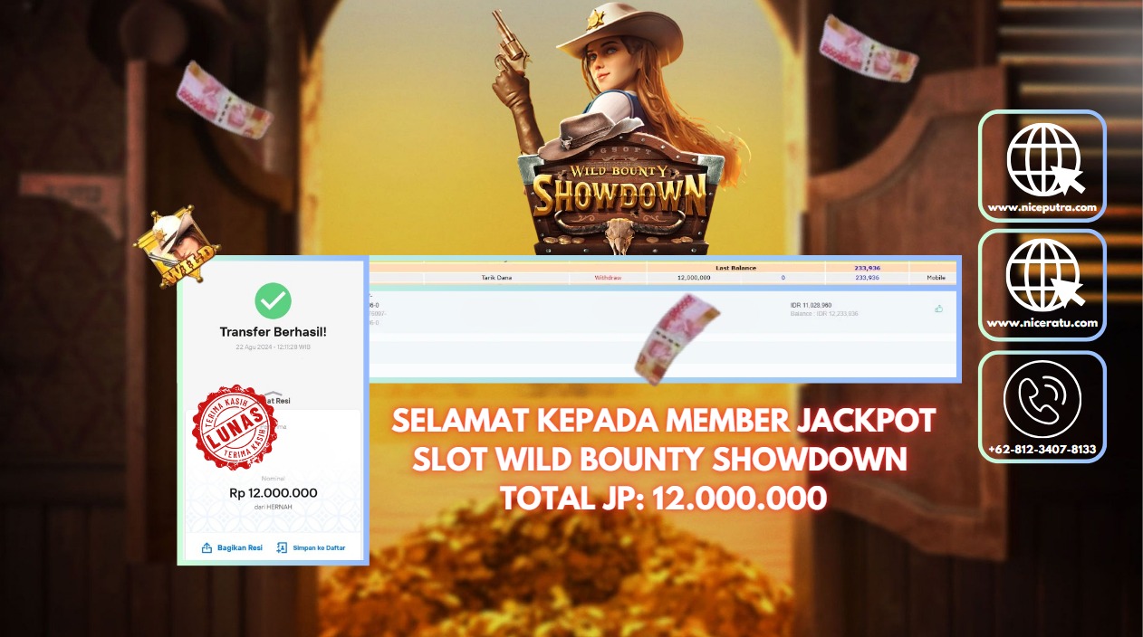 Selamat kepada User id : don**** Telah berhasil mendapatkan kemenangan besar pada permainan SLOT WILD BOUNTY SHOWDOWN Dengan kemenangan Sebesar Rp.12.000.000,- Setelah mengisi formulir withdraw dengan kurung waktu hanya 5 – 10 menit pihak NICETOGEL sudah melakukan transfer kepada pemilik Userid dan dana sudah dapat di cairkan oleh pemenang. Bukti pembayaran yang kami berikan merupakan bukti pembayaran yang SAH / VALID yang langung di dapatkan melaui tanda transfer transaksi dari Bank yang di tuju.