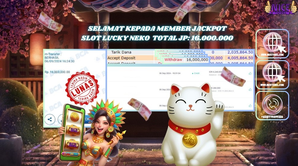 Selamat kepada User id : GUS**** Telah berhasil mendapatkan kemenangan besar pada permainan SLOT LUCKY NEKO  Dengan kemenangan Sebesar Rp.16.000.000,- Setelah mengisi formulir withdraw dengan kurung waktu hanya 5 – 10 menit pihak NICETOGEL sudah melakukan transfer kepada pemilik Userid dan dana sudah dapat di cairkan oleh pemenang. Bukti pembayaran yang kami berikan merupakan bukti pembayaran yang SAH / VALID yang langung di dapatkan melaui tanda transfer transaksi dari Bank yang di tuju.