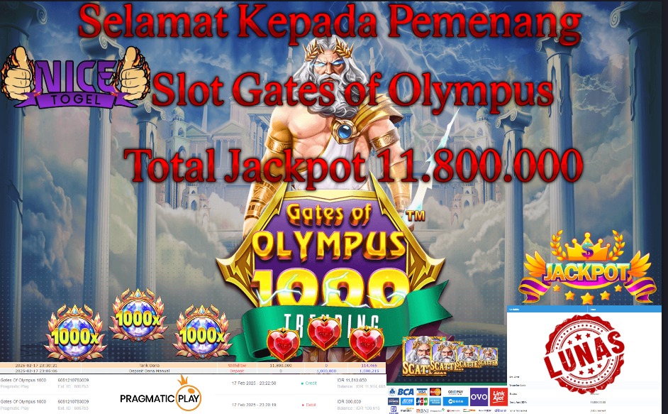 Selamat kepada member NICETOGEL User id : Kuyi** Telah berhasil mendapatkan kemenangan besar pada permainan SLOT GATES OF OLYMPUS 1000 Dengan kemenangan Sebesar Rp.11.800.000,- Setelah mengisi formulir withdraw dengan kurung waktu hanya 5 – 10 menit pihak NICETOGEL sudah melakukan transfer kepada pemilik Userid dan dana sudah dapat di cairkan oleh pemenang. Bukti pembayaran yang kami berikan merupakan bukti pembayaran yang SAH / VALID yang langung di dapatkan melaui tanda transfer transaksi dari Bank yang di tuju.