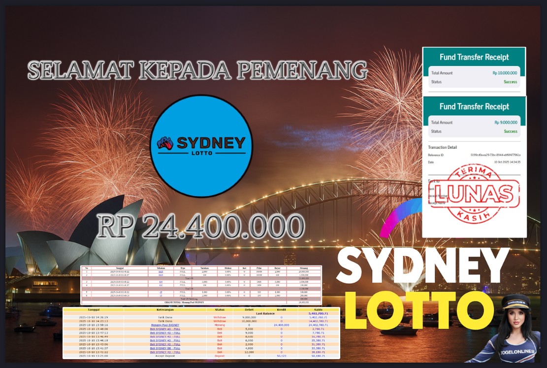 Selamat kepada User id : MANS** Telah berhasil mendapatkan kemenangan besar pada permainan JACKPOT TOGEL SYDNEY LOTTO Dengan kemenangan Sebesar Rp.24.400.000,- Setelah mengisi formulir withdraw dengan kurung waktu hanya 5 – 10 menit pihak NICETOGEL sudah melakukan transfer kepada pemilik Userid dan dana sudah dapat di cairkan oleh pemenang. Bukti pembayaran yang kami berikan merupakan bukti pembayaran yang SAH / VALID yang langung di dapatkan melaui tanda transfer transaksi dari Bank yang di tuju.